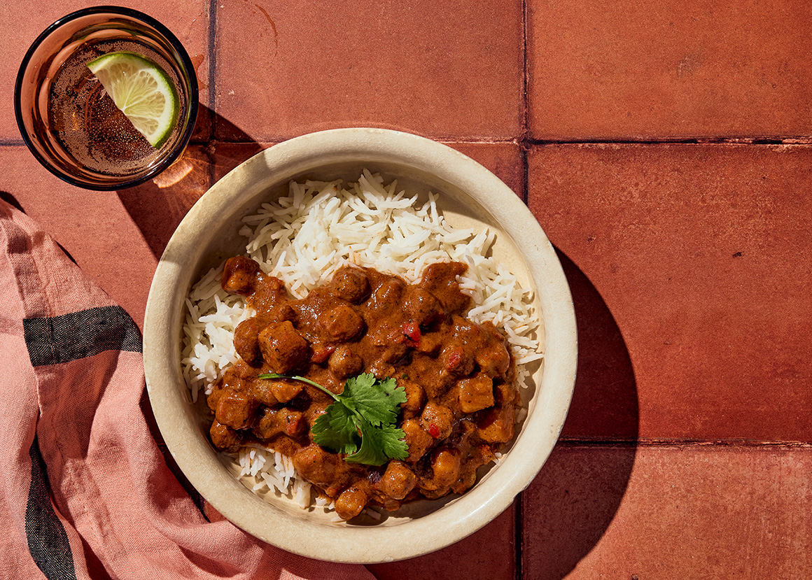 It’s no shock that Tikka Masala is one of the most loved dishes of India! It’s mild yet complex, with a rich tomato base and layers of warm spice flavor. To make this vegetarian meal, we simmered it with cubed potatoes, creamy chickpeas and red pepper. It’s also 100% plant-based and totally satisfying. So basically, this meal checks all the boxes! Warm it up, pour it over rice, and dinner is done!